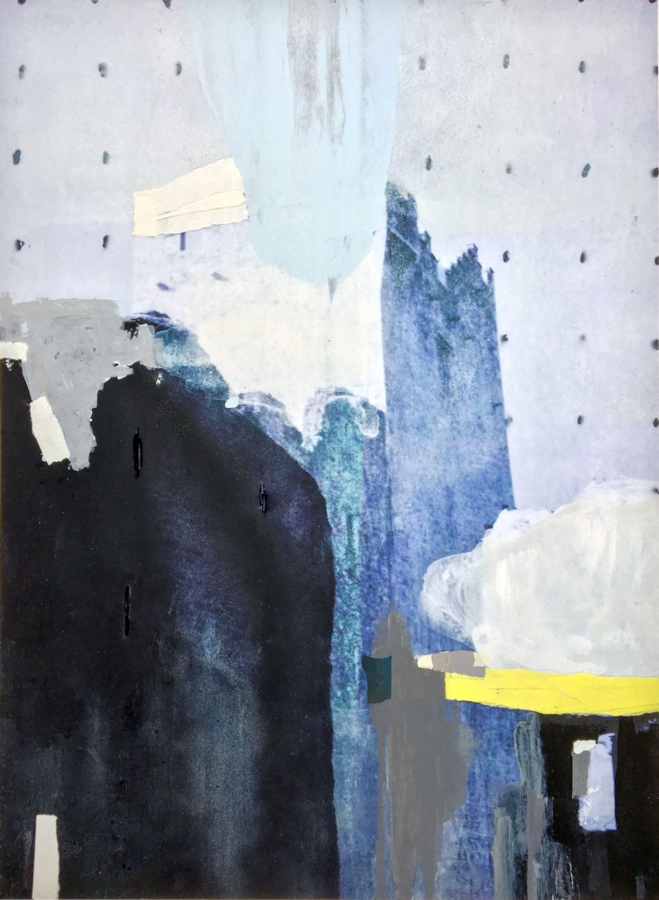 mixed media original artwork on paper – (unframed, unmatted). Collaged papers, spray paint, acrylic markers, on unique archival inkjet print, Strathmore 400 mgr watercolor paper, developed from a vintage unknown photograph.